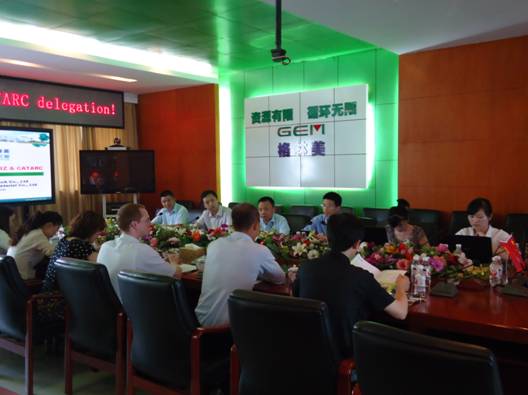 2012年6月12日,德國(guó)國(guó)際合作機(jī)構(gòu)GIZ中德動(dòng)力電池回收小組負(fù)責(zé)人及成員、中國(guó)汽車技術(shù)研究中心(CATARC)、大眾汽車(中國(guó))以及寶馬(中國(guó))的代表們蒞臨荊門格林美城市礦產(chǎn)資源循環(huán)產(chǎn)業(yè)園,考察了格林美在廢舊電池的回收技術(shù)、循環(huán)化處理、環(huán)保處理等方面的科技創(chuàng)新成就以及在城市礦產(chǎn)資源循環(huán)產(chǎn)業(yè)的發(fā)展情況,公司總經(jīng)理周繼鋒、研發(fā)部何顯達(dá)經(jīng)理、企業(yè)商務(wù)服務(wù)中心黃威主任等進(jìn)行了熱情的接待,并就電子廢棄物處理與廢舊電池循環(huán)化處理生產(chǎn)高技術(shù)產(chǎn)品進(jìn)行了深入交流。